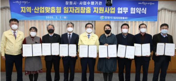 창원시(시장 허성무)는 올해 ‘지역산업맞춤형 일자리창출 지원사업’ 시행에 앞서 2일 7개소 사업 수행기관과 상호협력을 위한 협약을 체결했다고 밝혔다.