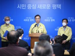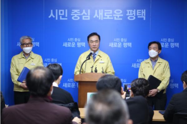 정장선 평택시장이 3일 시청 브리핑실에서 언론인 간담회를 열고 평택시 코로나19 대응 현황에 대해 소통의 시간을 가졌다.