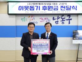 남동구(구청장)이강호는 ㈜엘엔케이시설물 대표이사 고삼석으로부터 지난달 28일 어려운 환경에서 힘들게 지내고 있는 소외계층을 위해 사용해달라며 후원금 1천만원을 기탁 받았다.