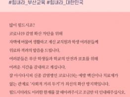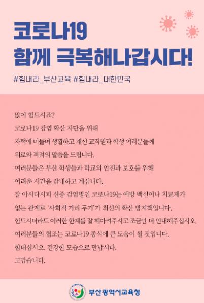 김석준 부산시교육청 재난안전대책본부장은“이 꾸러미는 코로나19 감염증으로 가정에서 어려운 시기를 보내고 있는 학생과 교직원들을 격려하기 위한 것이다”며 “자율보호격리 대상자들이 부산교육가족의 응원에 힘입어 이 위기를 잘 극복하기를 바란다”고 말했다.
