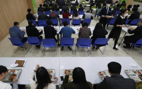 [한국4차산업신문]대전 동구는 2일부터 코로나19 확산 방지를 위해 중식시간 구내식당 이용 시 한 줄로 식사하기를 시행했다.