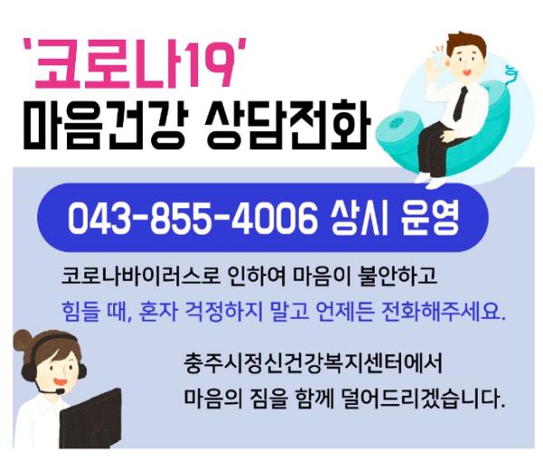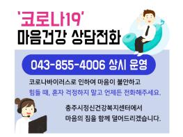 상담 전화 운영은 현재 코로나 19 감염 확산을 최대한 방지하는 것을 목표로 충주시정신건강복지센터에서 진행된다.