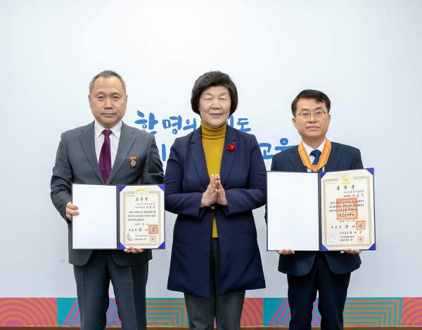 정부포상 대상자로 이용균 부교육감이 홍조근정훈장에, 정책관실 이철우 예산정책팀장이 대통령 표창에 선정되는 영예를 안았다.
