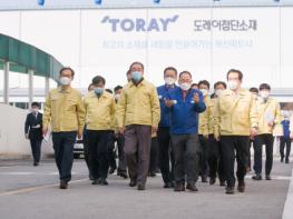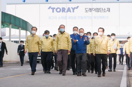 도레이 관계자로부터 MB필터(멜트블로운 부직포) 생산계획을 청취하고, 생산 현장을 함께 돌아보며, 코로나19로 인한 마스크 수급문제에 대한 해결책을 모색하는 자리를 가졌다.