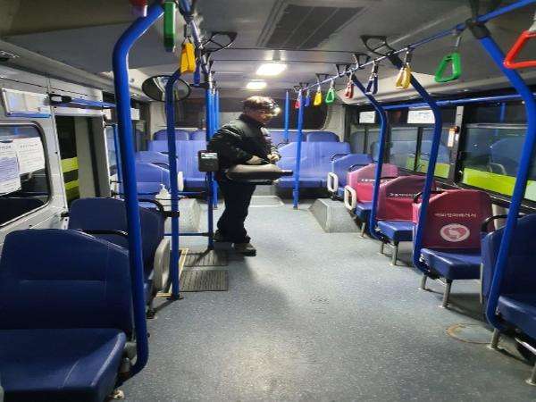 이에 따라 시는 그동안 1일 1회 운행 종료 후 전문업체를 통해 실시하던 차량 내·외부 소독을 지난 3일부터는 추가로 한 차례 더 일과 중에 실시하고 있다.