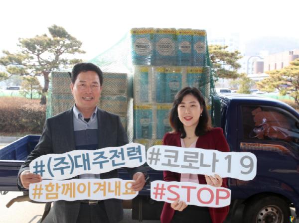 (주)대주전력은 코로나19로 어려움을 겪고 있는 복지사각지대 가정을 위해 물품을 마련했으며 물품은 ‘코로나19 STOP' 기부릴레이에 사용되어, 감염에 취약한 복지사각지대 가정과 코로나19로 인해 경제활동이 중단되어 어려움을 겪고 있는 복지사각지대 가정에게 전달 될 예정이다.