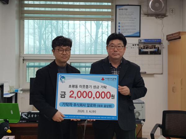 (주)알로하 건설(대표 윤상호)은 지난 4일 오산시 초평동행정복지센터를 방문해 이웃돕기 후원금 200만원을 기탁했다.