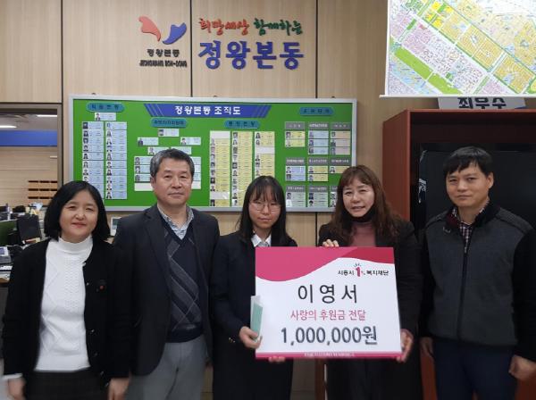 이 양은 “정왕시장에서 마트를 운영하고 계신 아버지와 큰아버지를 통해 이웃사랑 실천에 대해 배웠다. 현재 코로나19로 인해 어려움을 겪고 있는 많은 분들의 고통을 조금이나마 덜어드리기 위해 후원금을 기탁하게 됐다”면서 코로나19 예방을 위해서 열심히 일하는 공무원분들께 감사하다는 내용이 적힌 손 편지도 함께 전달했다.