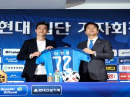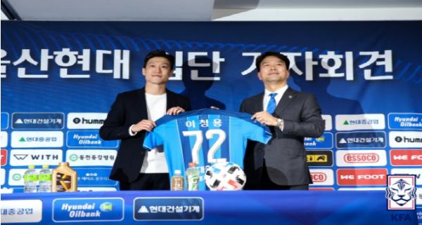 이청용은 5일 서울 종로구 축구회관에서 열린 울산현대 입단 기자회견에 참석했다. 기자회견장에 모습을 드러낸 이청용은 김광국 울산현대 대표이사로부터 건네받은 울산 유니폼을 즉석에서 입은 채 포즈를 취했다. 이어 그는 K리그에 복귀하는 소감과 앞으로의 각오를 밝혔다.