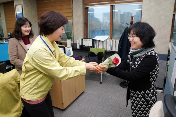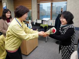 올해로 112주년을 맞은 세계 여성의 날을 기념하고, 최근 코로나-19 확산으로 침체된 지역경제 활성화와 화훼소비 촉진을 위해 여성직원에게 장미꽃 1송이를 나눠주었다.