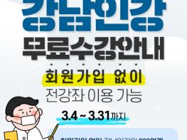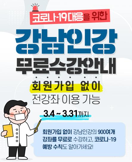 강남인강은 학생들의 편의를 위해 회원가입 절차 없이 누구나 중?고 900여개 전 강좌를 무료로 제한 없이 수강하도록 했으며, 이 기간 중 정회원에 가입할 경우 1개월의 수강기간을 추가 제공한다. 자세한 사항은 홈페이지(edu.ingang.go.kr)와 고객센터(☎1577-9100)를 통해 문의할 수 있다.