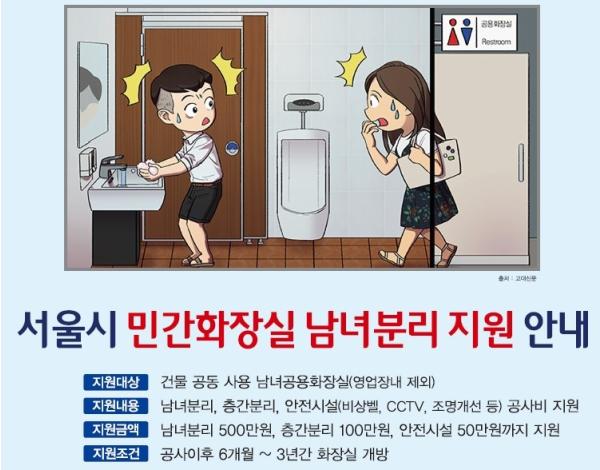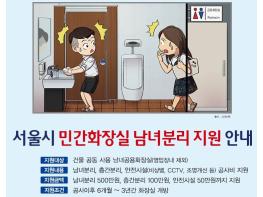 이 사업은 화장실 출입구를 분리해 공간을 구분 짓고, 출입구 분리가 어려운 경우 남녀 화장실을 층별로 나누는 것이다.