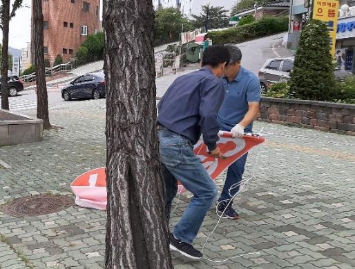 현수막은 철거 전후 사진 파일을 담당자에게 이메일로 보내면 된다. 구는 제출된 불법 광고물에 대해 과태료 부과 등 행정 조치를 취한다.