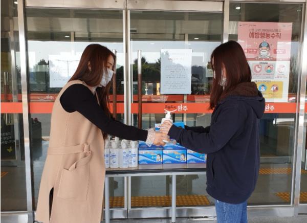 완주군건강가정·다문화지원센터는 코로나19 확산 예방을 위해 아이돌봄지원사업을 수행하는 돌보미 전원에게 마스크와 손소독제를 일괄 지급했다.