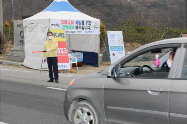 영동 진입 국도변에 설치된 거점발열측정소에서는 직접 차단방역 활동을 벌이며, 오고 가는 주민들에게 개인위생수칙과 의심증상 발생시 행동요령 등을 전달했다.