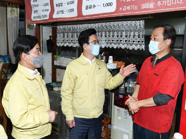 음식점에서 만난 시민들을 향해서는 “확진자 동선에 포함된 곳은 방역을 통해 이전보다 더 깨끗한 상태가 되기 때문에 평소처럼 마음 놓고 이용하셔도 된다”며 “시에서 확진자 발생 예방과 방역에 최선을 다하고 있으니 여러분들도 개인위생에 신경 써주시고, 또 지역경제가 살아날 수 있도록 힘을 모아 달라”고 당부했다.