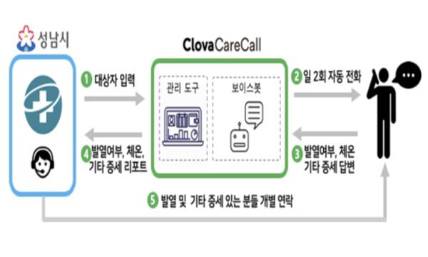 이 서비스는 인공지능 시스템 ‘클로바’가 대상자에게 하루에 2번씩 자동으로 전화를 걸어 상담하고, 발열, 호흡기 증상 등을 확인하는 체계다.