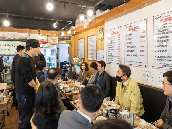 이에 김 구청장은 구청 간부 30여 명과 함께 피해 식당을 찾아 식사를 하며 애로사항에 대해 청취하는 시간을 가졌다.