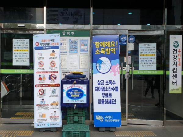 이에 따라 구리시(안승남 구리시장)는 지난 4일부터 살균소독수(차아염소산수)를 관내 16개소에 비치하여 소독수가 필요한 시민 누구나 사용가능토록 했으며, 현재 1만명 이상의 시민이 이용할 만큼 호응이 좋다.