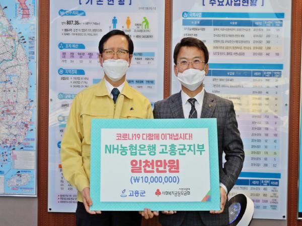 고흥군(군수 송귀근)은 6일 임성재 농협 고흥군지부장이 고흥군청을 방문해 코로나19 특별 성금으로 1천만원을 기탁했다고 전했다.