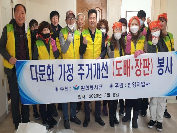 봉사단 측은 “최근 이사를 마친 다문화 가정의 기존 벽지와 장판이 오래 되어 교체가 필요하지만 비용 문제 등으로 어려움을 겪고 있다는 소식을 접하고 해당 세대를 방문하여 도배와 장판 시공을 마쳤다”고 밝혔다.