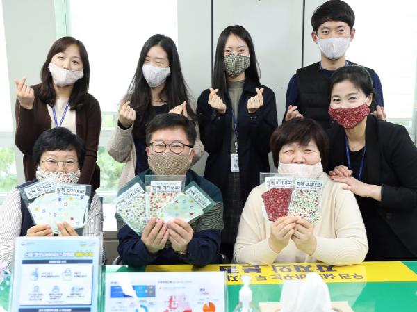 면 마스크 사용과 공정마스크 구입 양보하기 운동이 확산하고 있는 가운데 대전 서구(구청장장종태) 공직자들이 대전마을활동가포럼 회원들이 직접 제작한 면 마스크(기능성 마스크)를 구입해 근무하고 있다.